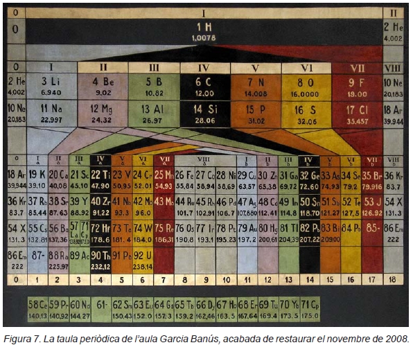 Això m’ha fet recordar que a la UB han restaurat una taula periòdica mural a l’aula Garcia Banús (veure article de Claudi Mans al NPQ 446 de maig – juny 2009) de la que avui 16 de novembre feien una presentació en viu.