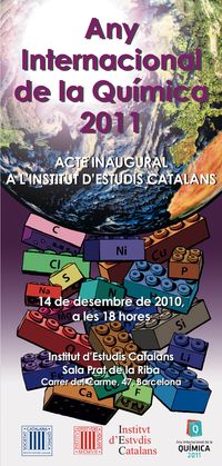 El passat 14 de desembre s’ha donat el tret de sortida a l’Any Internacional de la Química 2011 a la seu de l’Institut d’Estudis Catalans. Ha estat la inauguració formal a Catalunya amb una conferència del doctor Agustí Lledós, catedràtic de Química Física de la Universitat Autònoma de Barcelona, que portava el títol “Vull ser químic… per fer què?”.