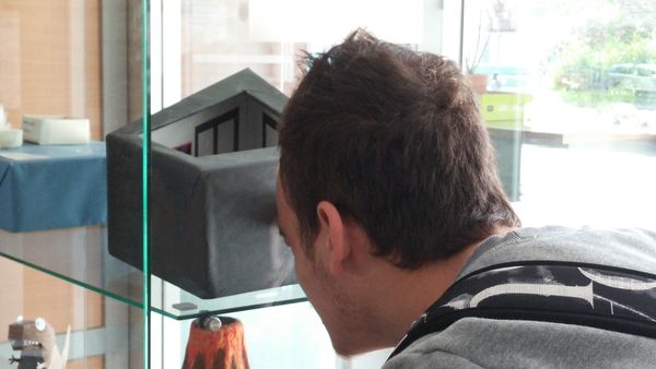 Continuant amb la celebració de l’Any Internacional de la Llum, hem posat a l’institut Maria Rúbies de Lleida una nova instal•lació relacionada amb la llum, més aviat en aquest cas amb la percepció que el nostre cervell elabora amb la informació que li arriba dels ulls. Es diu Habitació d’Ames en honor al seu inventor, l’oftalmòleg nord-americà Adelbert Ames, Jr., que ho va fer en 1946.