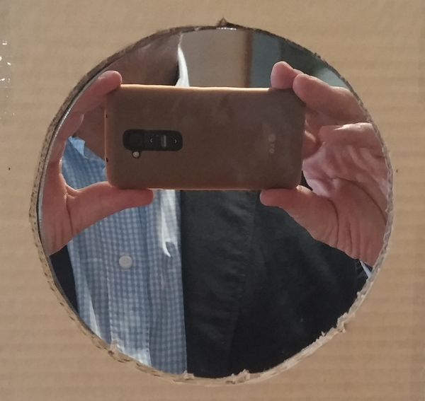 El mirall convex (el de la dreta de la primera fotografia) és un espill dels que es fiquen en la sortida dels garatges o en les cantonades per a tenir una visió de les zones amagades. El mirall que he utilitzat te un diàmetre de 33 cm, encara que una part està amagada per tal de que mostri la mateixa superfície que el mirall còncau, i té un radi de curvatura també similar al del seu company còncau. El preu en una ferreteria és de 31 €.
