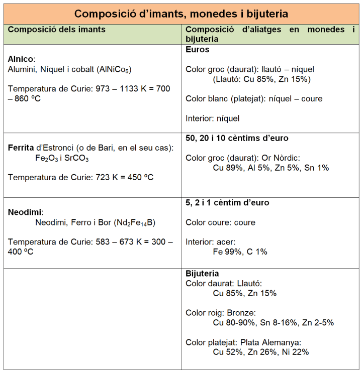 Per a fer-lo més senzill bastaria amb ratllar els metalls amb un bocí d’alumini i fer una classificació entre metalls dus i tous en funció de si són ratllats o no per l’alumini.