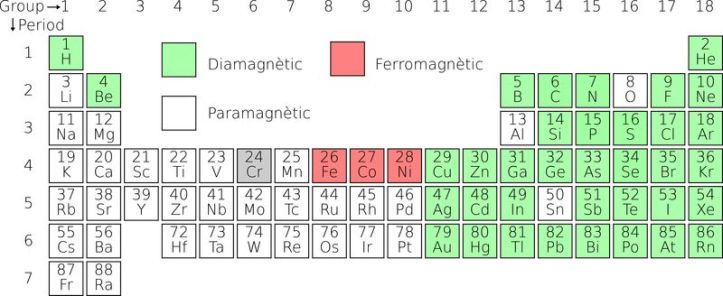 Els elements de la taula periòdica es poden dividir respecte al seu comportament magnètic pràcticament en dos grups, els paramagnètics i els diamagnètics. Ara bé, per a fer demostracions la gràcia no està ni en uns ni en els altres, sinó en tres elements que presenten un comportament molt peculiar, els ferromagnètics ferro, cobalt i níquel.