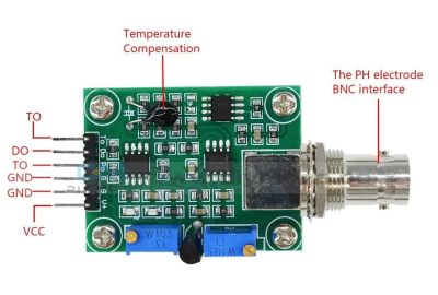 Offset: El rang de mesures de la sonda de pH oscil·la entre valors negatius i positius i el 0 representa un pH de 7,0. Per poder utilitzar la sonda amb Arduino el circuit electrònic modifica el valor mesurat per la sonda i envia només valors positius de tensió.