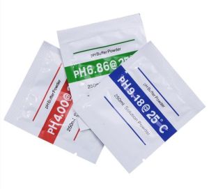 La segona és mesurar el voltatge que dona el sensor de pH per a dos o tres valors de referència de pH, una vegada connectada la sonda i calcular la línia de calibratge. El més recomanable és utilitzar solucions de calibratge en sobre (també n’hi ha en líquid però és més fàcil conservar les de sobre). Aquestes solucions es venen (a bon preu, 4 € el lot) en diferents valors encara que els més comuns són pH 4.01, pH 6.86 i pH 9.18.