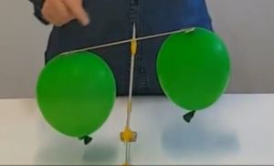 L’experiment consisteix en penjar dos globus plens d’aire, més o menys igual, dels extrems dels braços d’una balança i equilibrar-la de manera que la creu quedi horitzontal. A continuació es punxa un dels globus i s’observa què és el que passa.