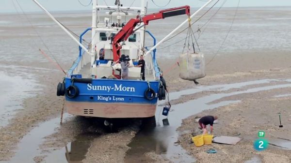 Aquí sota en teniu el vídeo del reportatge. La recollida amb vaixell de les escopines es mostra a partir del minut 2. Aquest vídeo és un fragment d’un documental que va emetre la 2 de TVE en el mes de setembre de 2020 (ja no hi és en televisió a la carta) i que pertany a la sèrie Comida al descubierto (Food Unwrapped) on s’explicava com es fan industrialment el pesto i els núvols, a més de cóm es realitza la recollida d’escopinyes en diferents zones de la costa de Gran Bretanya.
