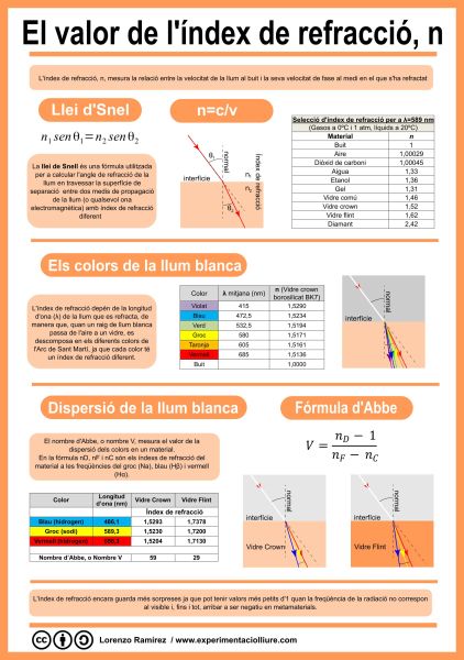El concepte d’índex de refracció s’introdueix com una propietat del material transparent que és capaç de variar la velocitat de la llum (blanca) quan el travessa, i que es calcula com el quocient entre la velocitat de la llum al buit i la velocitat de la llum al material: