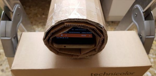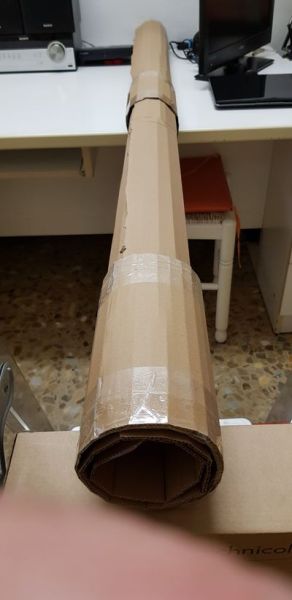 L’alternativa que proposo per a fer l’experiment és introduir el telèfon en un tub, de manera que el so no te més nassos que viatjar al seu llarg. Com he comentat en parlar del material qualsevol tub va bé, sempre que es pugui ficar el telèfon dins. El tub que he utilitzat per obtenir les dades que indico més avall es mostra en les fotografies i l’he fet d’una longitud d’1,69 cm amb el cartró d’una caixa.