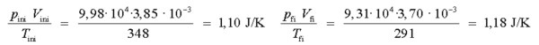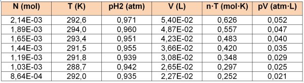 En el primer dels seu experiments obté en dues diferents situacions uns valors pel quocient PV/T de 1,10 i 1,18 J/K respectivament, i en el segon encara millors resultats.