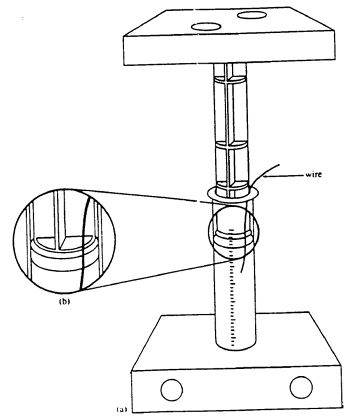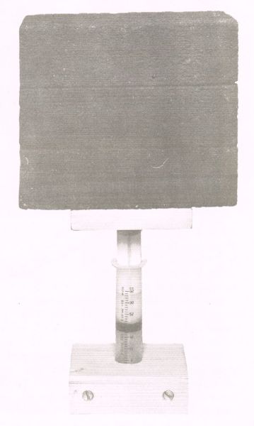 Per aguantar la xeringa es pot usar una base de fusta a la que s’ha realitzat un forat del diàmetre de la xeringa, o es pot subjectar amb unes pinces i un suport.