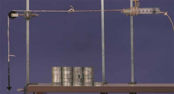 Estirant l’èmbol de la xeringa amb peses