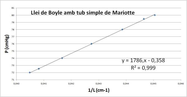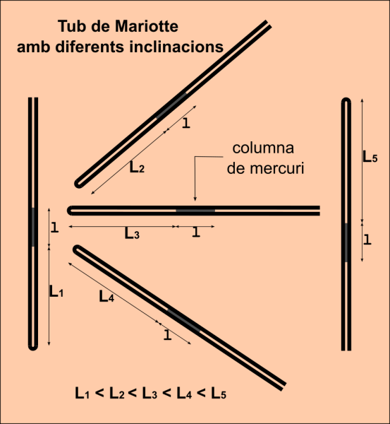 Conforme la pressió sigui més petita la columna d’aire tancada dins el tub anirà fent-se més gran, de manera que es poden obtenir valors de longitud de l’aire en funció de la pressió que pateix i estudiar la relació que existeix.