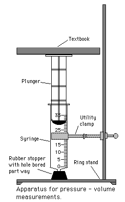On es veu que en disminuir el volum d’aire de la xeringa va augmentant la pressió a la que està sotmès. Per a trobar la pressió total s’ha de sumar la pressió atmosfèrica (una atmosfera), ja que els manòmetres normalment indiquen sobrepressions.