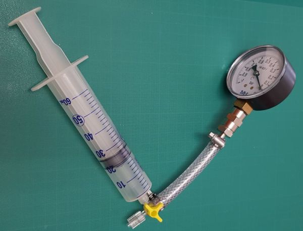 Respecte al manòmetre, hauríeu d’aconseguir un com els dels tensiòmetres/ Esfigmomanòmetres clàssics que mesuren fins a 300 mmHg i no són cars.