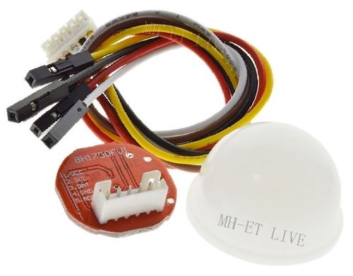 El BH1750 es un sensor digital del nivell de llum que es connecta amb facilitat a la placa Arduino a través del bus I2C. Es troben al mercat dos tipus de sensors que funcionen igual de bé ja que tenen el mateix xip (BH1750), però un d’ells te un caputxó de plàstic translúcid que difumina la llum que li arriba i un connector amb cables integrat (BH1750FVI), i l’altre no (GY-302). Els dos son molt barats en el mercat oriental (un o dos euros).