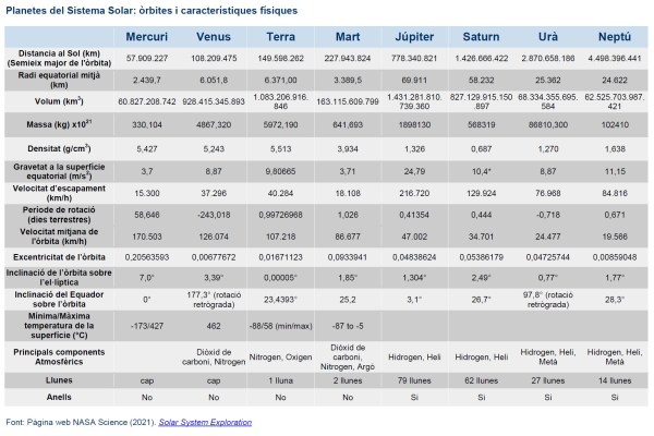 Us recomano que feu la prova de mesurar els diàmetres de qualsevol objecte rodó, com per exemple aquests rotllos de cinta adhesiva de sota, i els compareu amb els semieixos de les òrbites dels planetes del Sistema Solar que teniu en el quadre que ve a continuació fet amb dades de la web de la NASA, on es mostra el valor del semieix major de l’orbita i el de l’excentricitat. Comprovareu quan de petit és l’error de considerar les òrbites com a circulars, fins i tot en el cas de Mercuri que és el que te una major excentricitat.