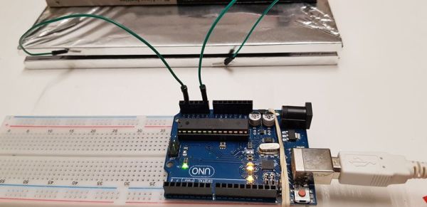 El circuit és molt senzill i no necessita cap component extern més que el propi condensador i la placa Arduino connectada a un ordinador. S’ha de procurar que els connectors de les plaques del condensador siguin prou curts per eliminar el més possible el seu efecte en la mesura.