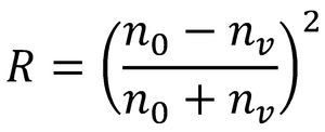 on n0 i nv són els índexs de refracció del primer (aire) i el segon mitjà (vidre) respectivament. El valor de R varia de 0 (sense reflexió) a 1 (tota la llum reflectida) i generalment s’expressa com a percentatge.