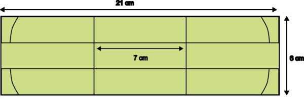 Si s’utilitza el cartró d’una capsa de cereals, unes mides poden ser com les del dibuix de sota (aproximadament 21 x 6 cm). Quant més gruix sigui el cartró les mides han de ser més grans i al revés, si es fa amb paper normal de 80 grams han de ser més petites (12 x 3 cm, per exemple). Les mides no són crítiques, però sí importants 😉 .