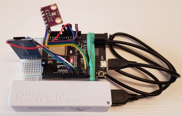 Encara que no cal, al final del codi he ficat que es puguin veure les dades pel port sèrie de l’ordinador, en cas que estigui la placa connectada. Com he dit al començament la idea és que la placa actuï autònomament rebent el corrent de 5 V d’unes piles o una bateria de les que serveixen per recarregar els telèfons mòbils, com es veu en la fotografia de sota.
