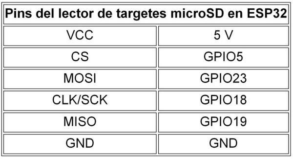 El mòdul de la targeta microSD se comunica mitjançant el protocol de comunicació SPI. Es pot connectar al ESP32 usant els pins SPI predeterminats.
