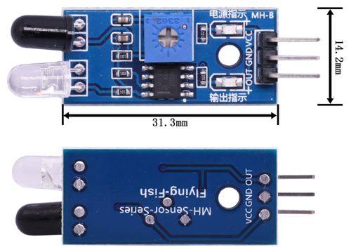 També podríem comprar i utilitzar un mòdul ja muntat amb els dos elements junts, un al costat de l’altre, i que funciona per reflexió de la llum IR al reflectir-se a l’objecte que passa pel davant. El cos que es mou ha de passar a menys de 10 cm del sensor. Aquest mòdul també és prou barat.
