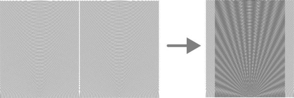 Ara parlaré d’una vessant de l’efecte moaré que es coneix de diferents maneres (animació per reixa de barres (barrier grid animation), Scanimation o animació per escàner, imatges de moviment màgic, etc) i bàsicament consisteix en aconseguir que una imatge estàtica sigui percebuda com a imatge en moviment gràcies al lliscament per sobre del dibuix d’una graella de barres verticals negres amb espais transparents entre elles, com es veu a l’animació de sota.