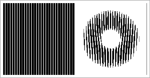 Jo, que el que volia era parlar de les animacions moaré que venen a continuació, mai havia pensat (i m’he quedat epatat) en el gran camp d’estudi que hi havia actualment al respecte, i no havia passat de la utilització d’aquest efecte per a simular les interferències sonores o lluminoses de focus puntuals, com les que s’aconsegueixen al superposar dues plantilles com les de sota.