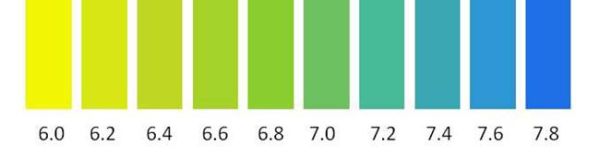 - Si el pH de la mostra és de 7,6 o més gran repetiu la prova utilitzant porpra de m-cresol com a indicador i anoteu els resultats amb un decimal.