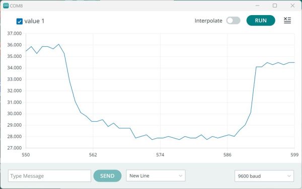 Si es va doblegant i estirant el paper pintat amb llapis es veu com va variant la seva resistència. A sota teniu una captura de pantalla en la que es veu que al doblegar el paper la seva resistència disminueix, encara que moltes vegades els resultats semblem molt aleatoris.