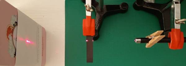 Un punter làser vermell de poca potència és suficient (<5 mW). Es pot comprar a les botigues de tot a 100 i per internet a baix cost (millor si van amb piles AAA) i a la caixa normalment indiquen la longitud d’ona a la que emeten la llum. Per encendre’ls tenen un botó que es pot subjectar amb una agulla de roba, com en la fotografia.