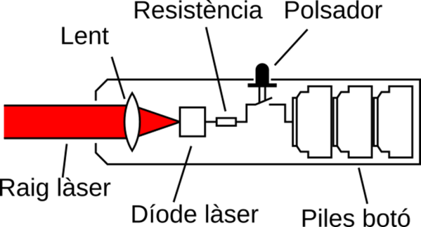 Si voleu saber més sobre làsers i la seva física podeu mirar-vos un llibre com El láser, la luz de nuestro tiempo de Alonso, B. i altres (2010), editat per OSAL Student Chapter que és una associació de divulgació de l’òptica formada per estudiants de la Universitat de Salamanca. En tot cas a continuació us faig cinc cèntims del cas abans de passar a proposar alguns experiments que podem fer als nostres laboratoris (i a casa) amb punters làser.