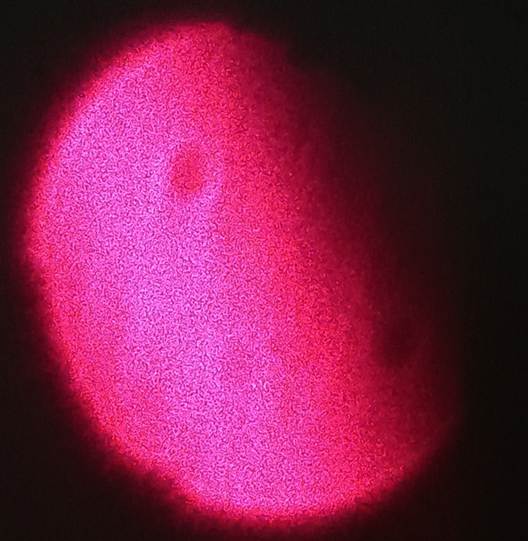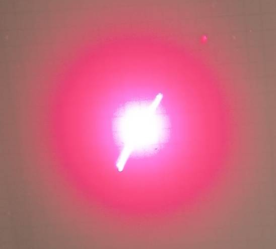 Aquest efecte es pot amplificar expandint el raig làser i projectant-lo a una distància d’un parell de metres sobre una paret blanca o un paper blanc enganxat a la paret. Per expandir el feix làser s’ha de ficar al seu davant una lent convergent de distancia focal de +15 ó +30 mm (la que tingueu de distància focal petita en els vostres equips d’òptica). Ara, observeu la zona il·luminada i fixeu-vos en els nombrosos punts foscos que apareixen.
