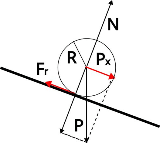 Aquest moviment ens sembla lo més natural, però si en lloc d’una boleta fora un tac prismàtic de goma no rodaria, en tot cas lliscaria o es quedaria quiet depenent de que la força de fregament fora més petita o igual a la component del pes del tac en la direcció paral·lela al pla.