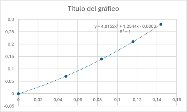 Si ara grafiquem en un full de càlcul la distància vers el temps obtenim la gràfica de sota en la que està representada la línia de tendència, l’equació a la que s’ajusta i el valor de la qualitat de l’ajust, R2.