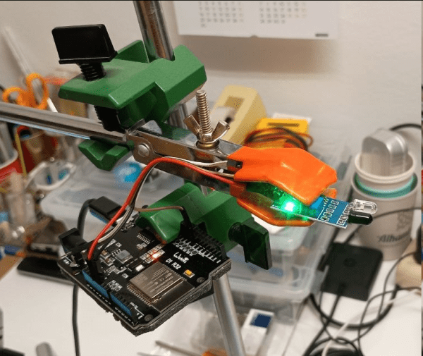 La tècnica que proposo aquí presenta dues avantatges respecte a la de la barrera de llum. Per una banda el muntatge és molt més simple ja que no cal més que comprar el sensor (no cal construir-lo a partir dels seus elements) i és de baix cost (3 €), i no cal més que un suport. Per una altra el programari consisteix en un sketch (programa per a l’IDE d’Arduino) una mica més elaborat que el de la barrera, que ara incorpora un filtre antirebot (debounce) el que evita falsos canvis d’estat, i a més funciona en un microcontrolador ESP32 (no només amb un Arduino).