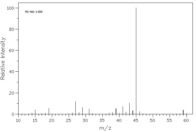 2-propanol: CH3 – CHOH – CH3 → CH3 + CH3 – CHOH+ (=45)