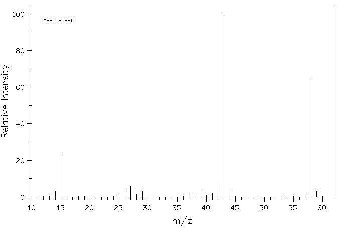 Aquest altre espectre és el del 2-propanol (isòmer del 1-propanol) i és bastant diferent. Per una banda, no es veu el pic corresponent M+, ja que el ió molecular és molt inestable i es descomposa totalment abans de poder ser registrat.