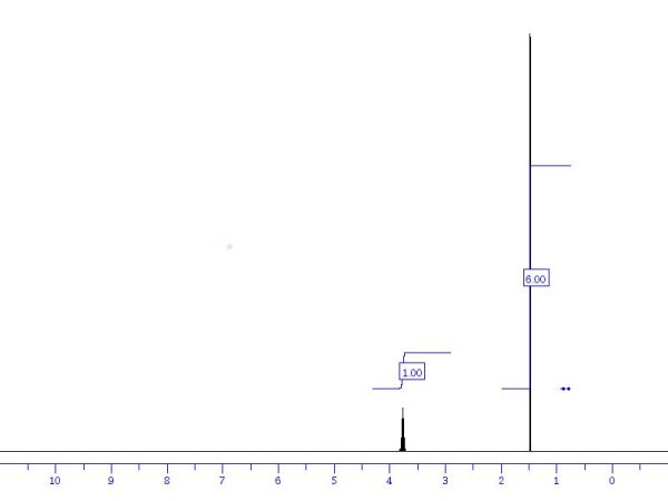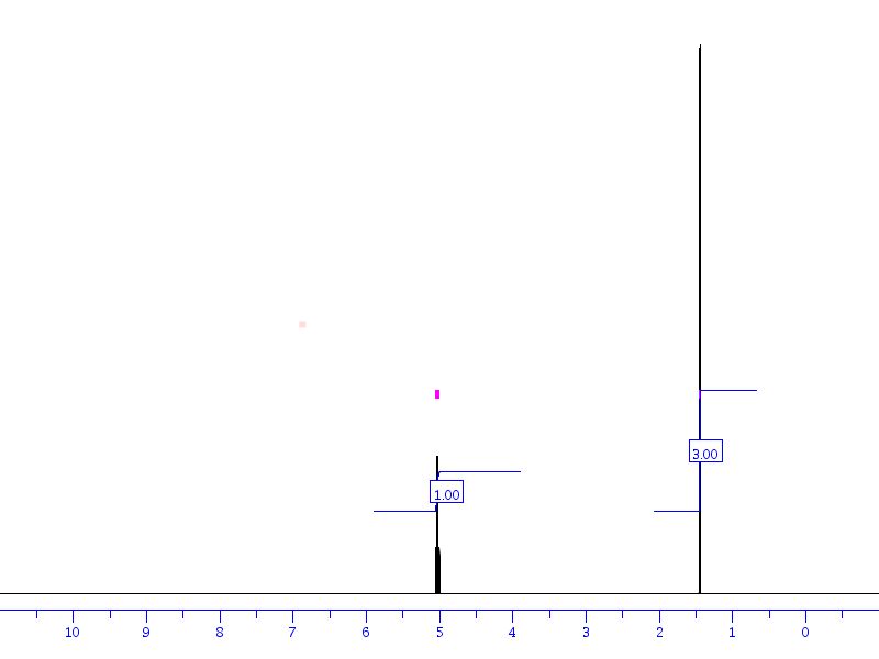 L’espectre RMN ho corrobora ja que per l’estructura simètrica de la molècula, que només te dos tipus d’hidrògens, només han de sortir dos pics en la proporció 1 a 6, i això és el que mostra l’espectre.