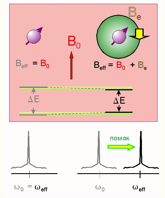 Els nuclis d’hidrogen estaran segons els seus voltants diferentment apantallats o desapantallats i, com resultat d’això, el protó estarà sotmès a un camp magnètic efectiu: